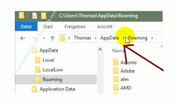 Dazu öffnest du mal ein Explorer-Fenster und gibst oben in der Adresszeile des Explorers folgenden Befehl %appdata% ein.