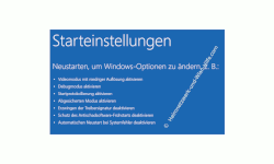 Damit gelangen wir in den Menübereich "Starteinstellungen", wo dir verschiedene Startoptionen aufgelistet werden.