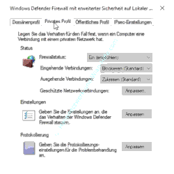 Es gibt einen Protokollierungsbereich für das Domänenprofil. Für das Domänenprofil haben wir jedoch die Protokollierung nicht aktiviert. Das ist in der Regel nur für Firmennetzwerke notwendig, die sich über eine Domäne anmelden.